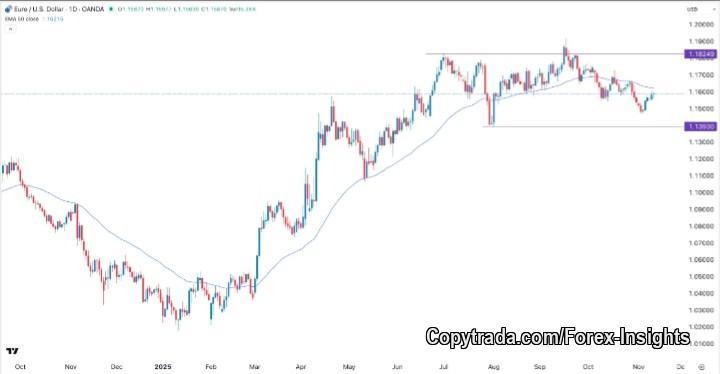-- Resistance: The pair is seen testing around 1.1600 as a first target before stronger upside. If it breaks and sustains above ~1.1600, then the next upside might be ~1.1770-1.1800 (https://www.fxstreet.com/analysis/november-2025-forex-outlook-202510270123)